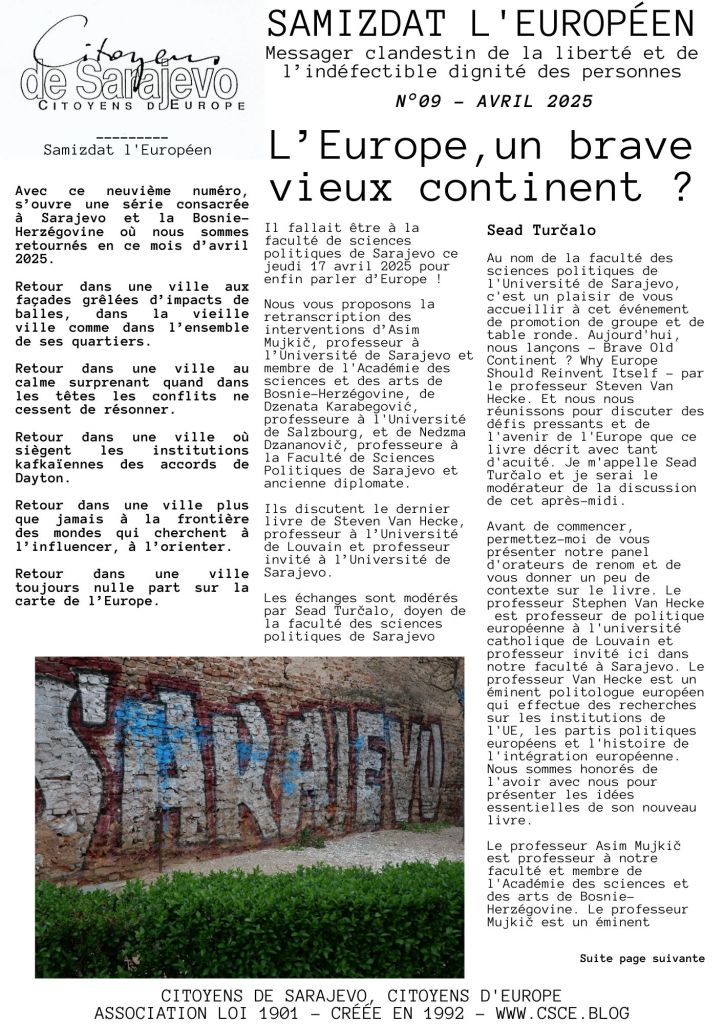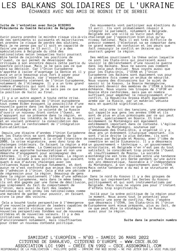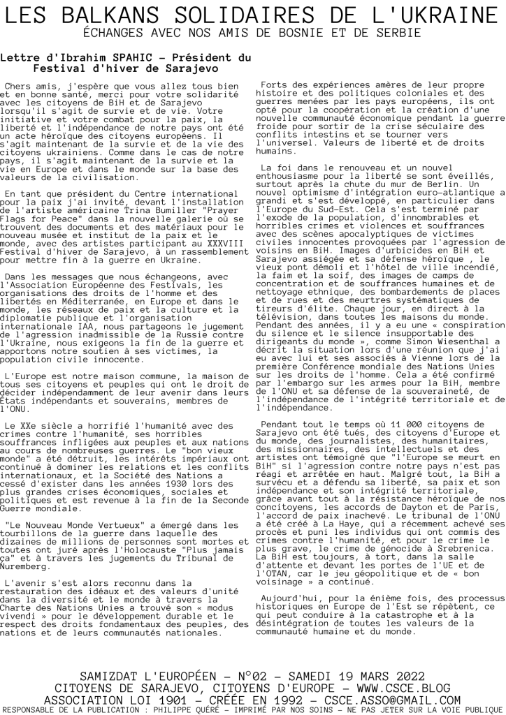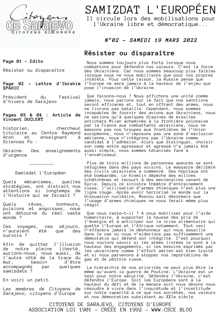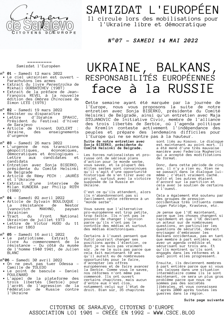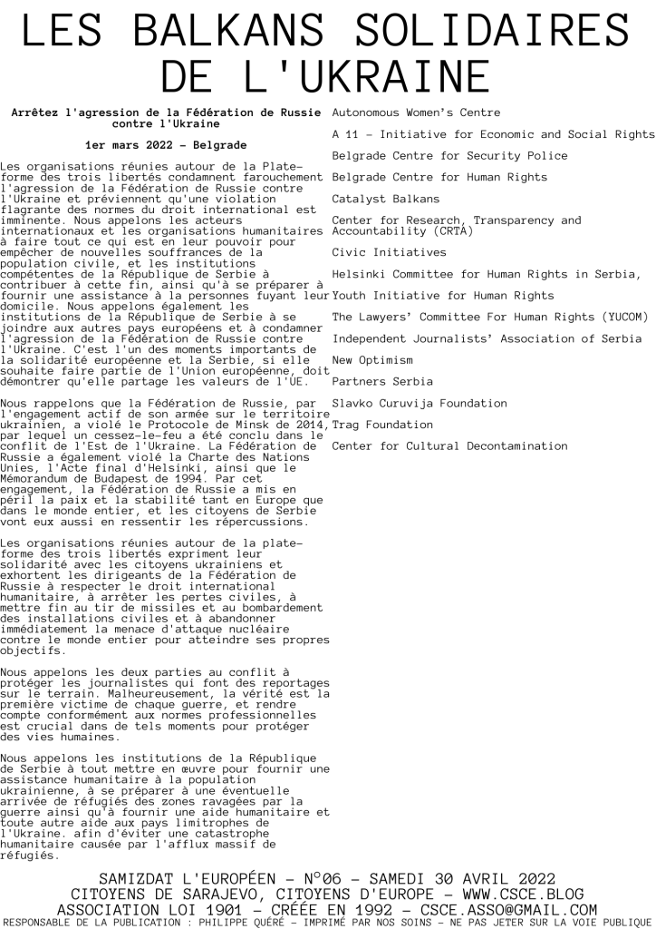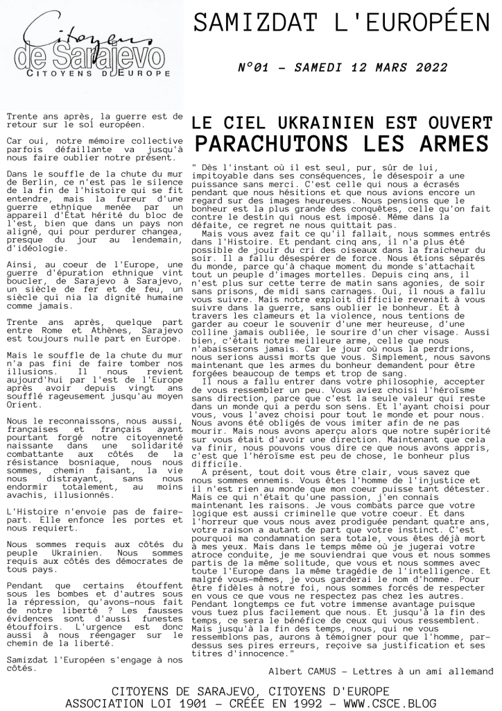 Avec les amis de Citoyens de Sarajevo, citoyens d’Europe, nous formons le voeu que Samizdat l’Européen nous aidera à cheminer et à nous retrouver.