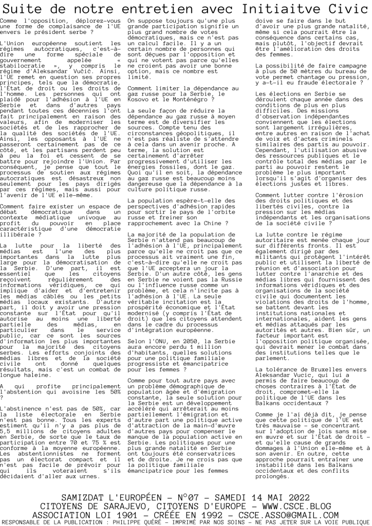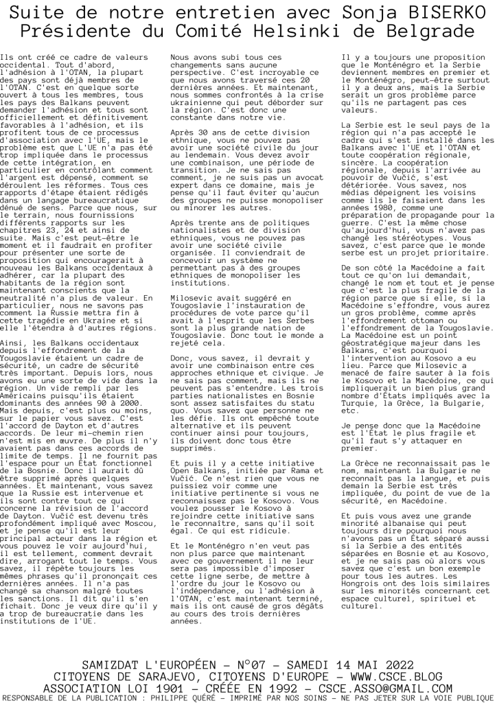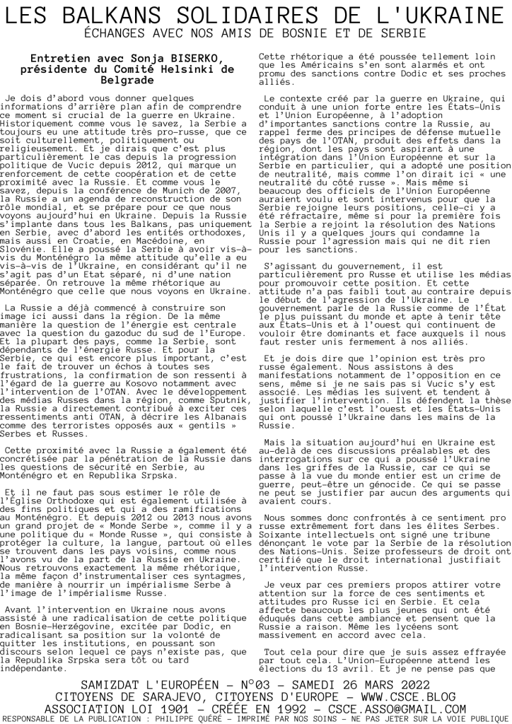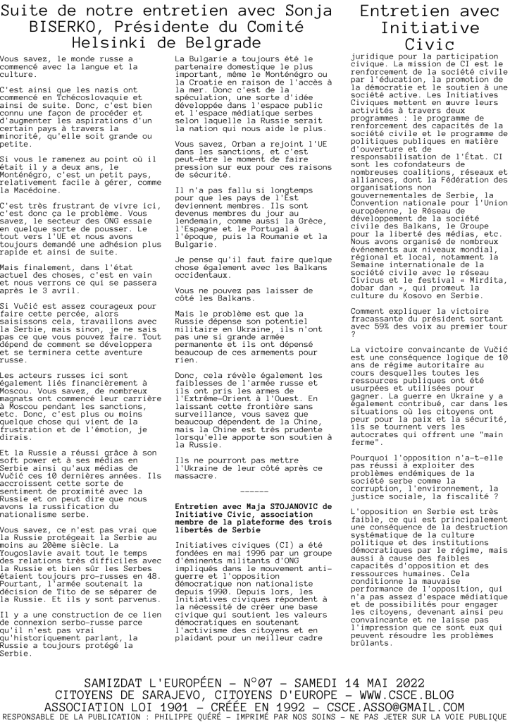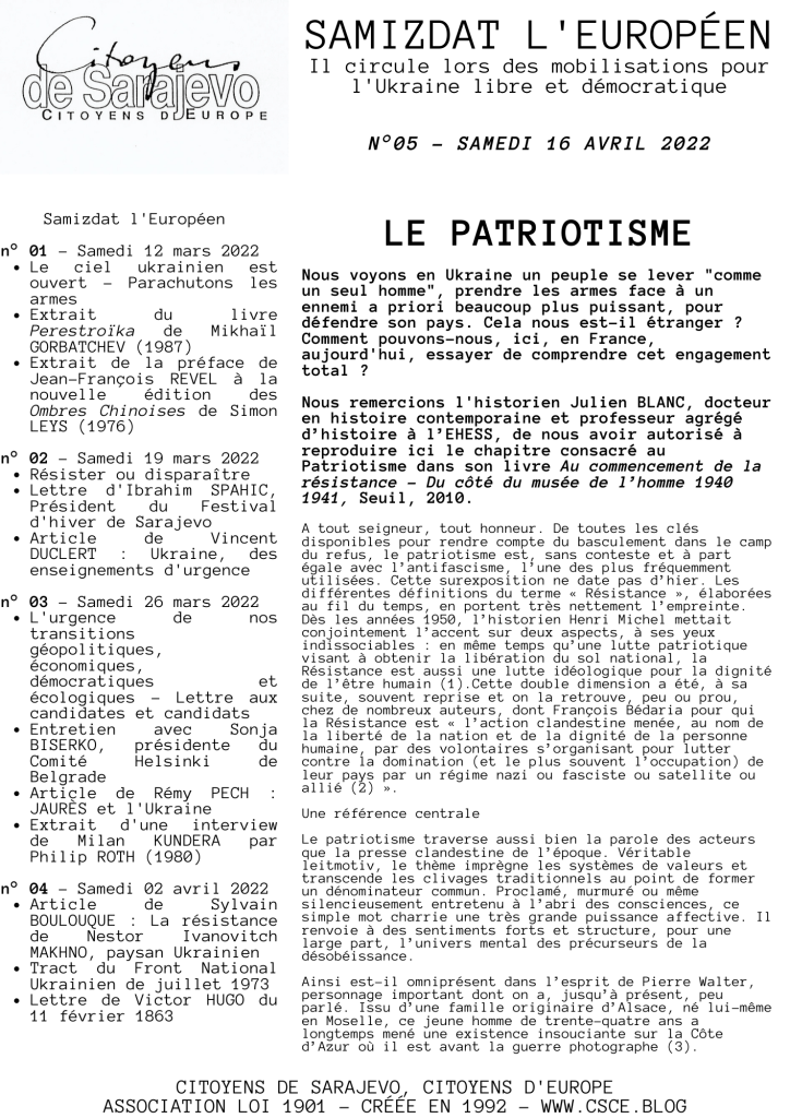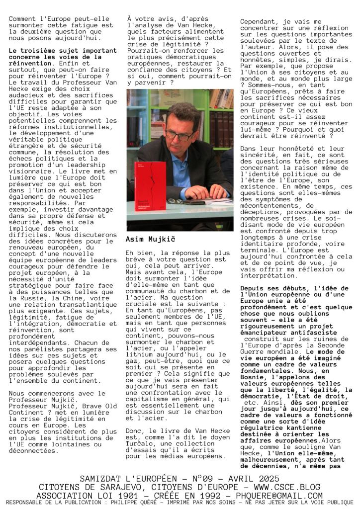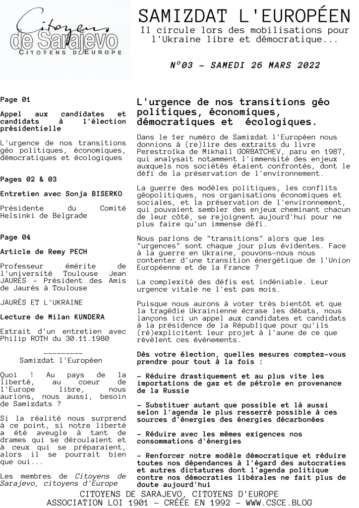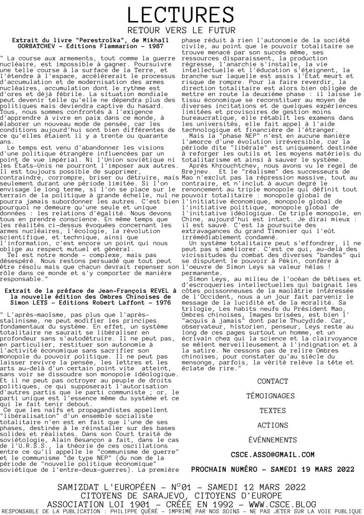 Avec les amis de Citoyens de Sarajevo, citoyens d’Europe, nous formons le voeu que Samizdat l’Européen nous aidera à cheminer et à nous retrouver.