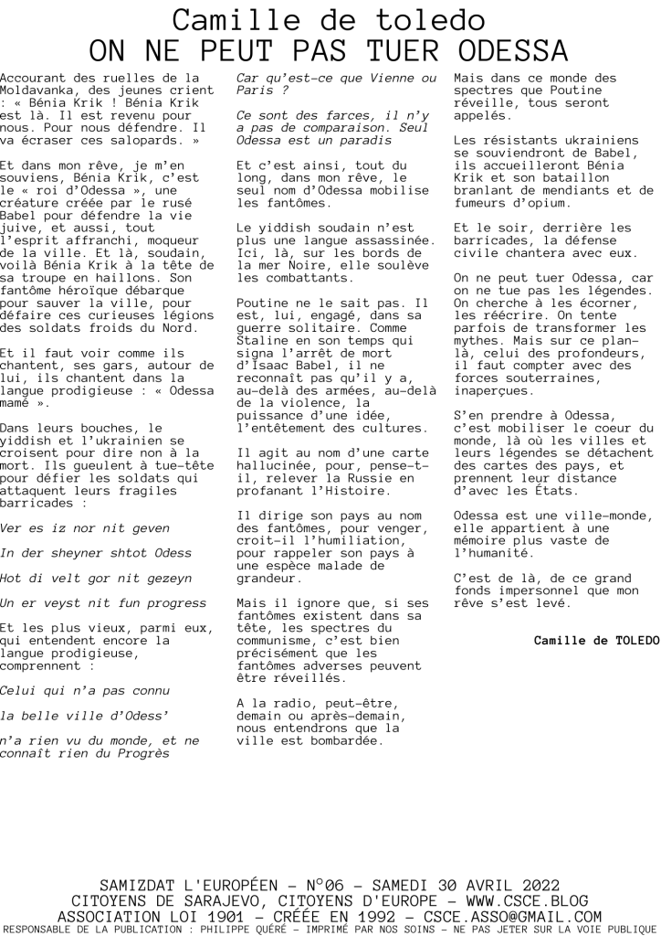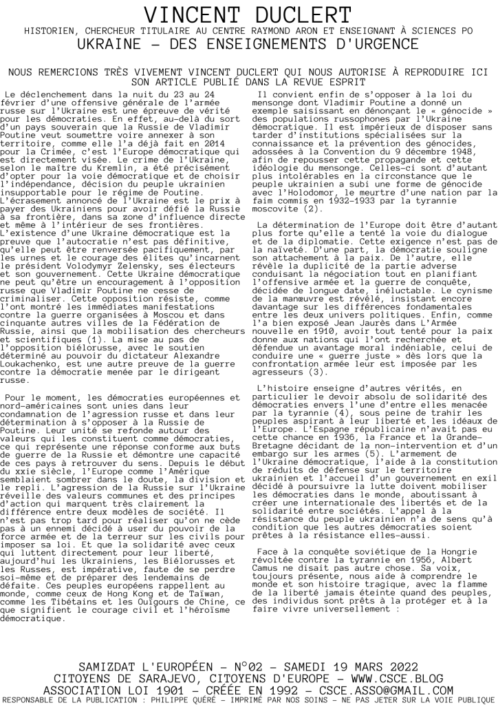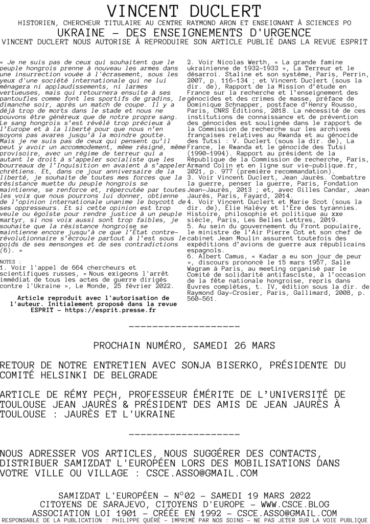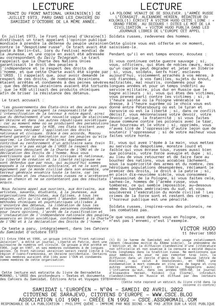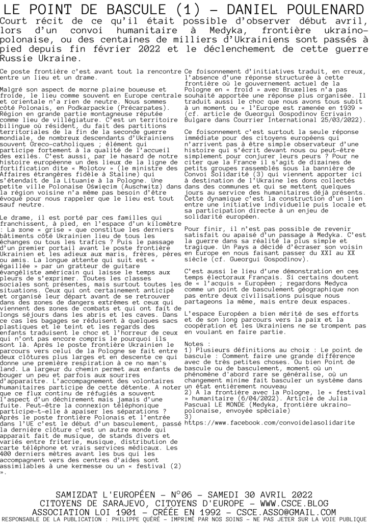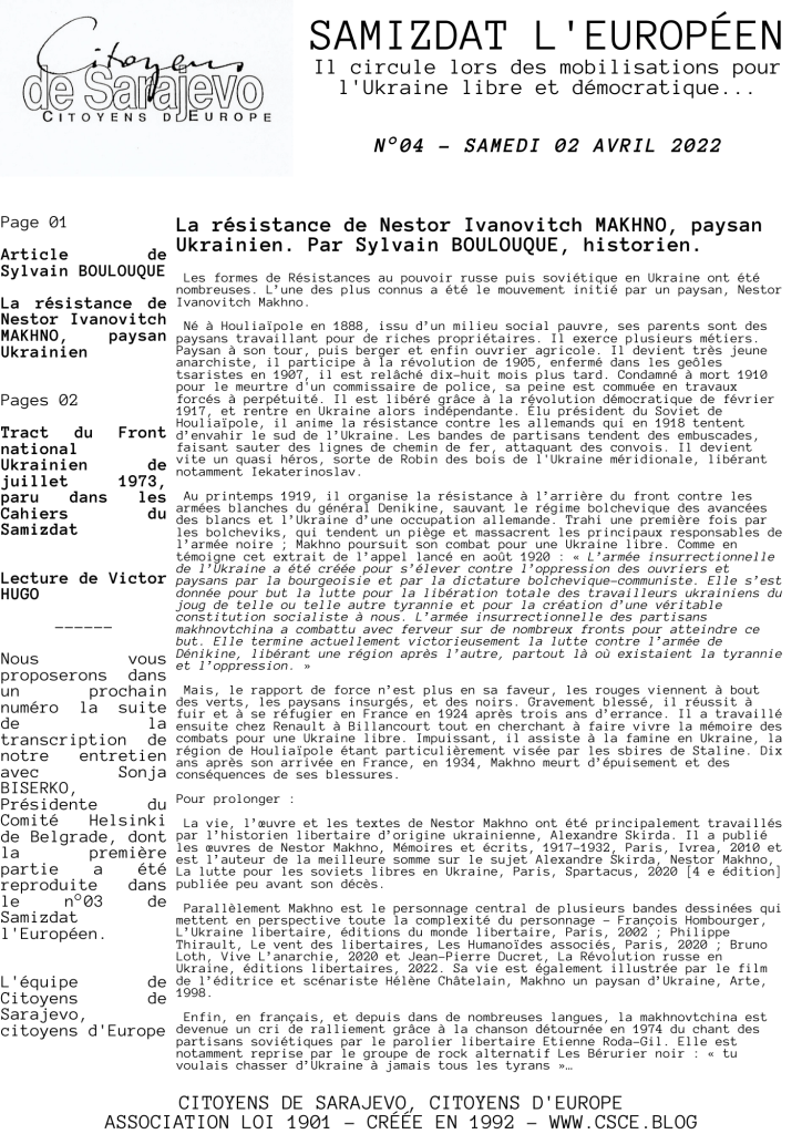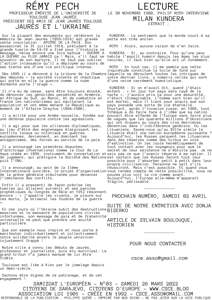 Avec les amis de Citoyens de Sarajevo, citoyens d’Europe, nous formons le voeu que Samizdat l’Européen nous aidera à cheminer et à nous retrouver.